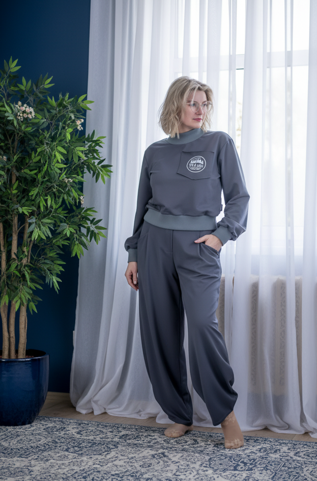 Styling tip: doplň šedou soupravu o bílé tenisky nebo dlouhý kabát – čistý, městský look, který nikdy neomrzí.